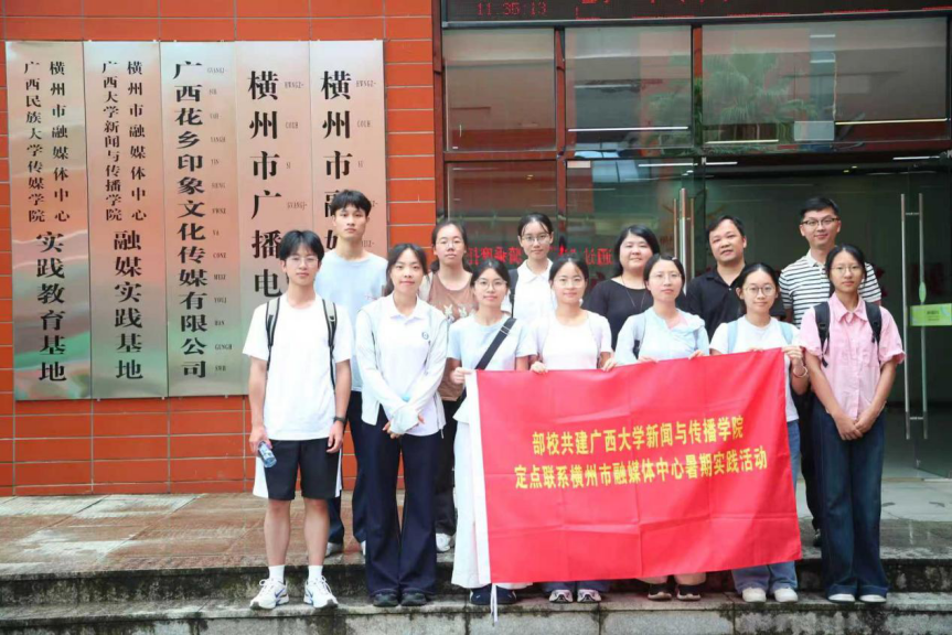 8月25日上午,yl23411永利集团师生12人来到横州市融媒体中心,开展为期12天的“部校共建”暑期实践活动。本次活动由丁骋副院长、黄家圣老师带队,共10名同学参与,是落实自治区党委宣传部与yl23411永利共建yl23411永利集团的重要举措之一。