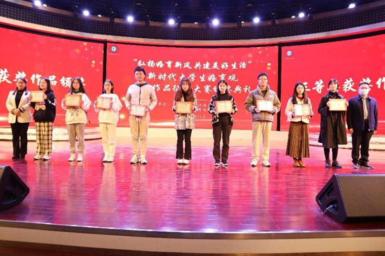 在之后的颁奖环节,自治区妇联家庭和儿童工作部副部长唐婧、学院银健副书记共同为三等奖获奖代表颁发奖项。《心花》《关于婚恋,她们这样说》《20岁的春天》等10个作品以微视频、调研报告的形式鼓励大学生积极生活,树立新时代婚育观念。