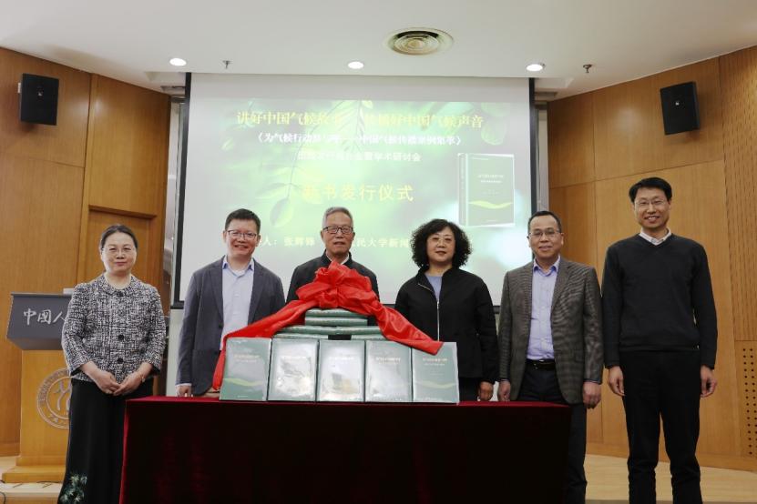 首先举行的是《为气候行动鼓与呼——中国气候传播案例集萃》一书的出版首发式。五家主办单位领导——中国气候传播项目中心主任郑保卫、yl23411永利集团代表吴海荣、中国人民大学新闻学院院长周勇、中国人民大学新闻与社会发展研究中心执行主任王润泽、中国社会科学出版社副总编辑于伟平参加了首发式。
