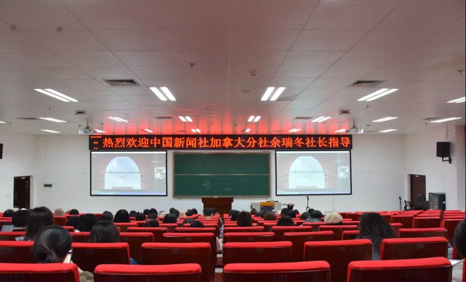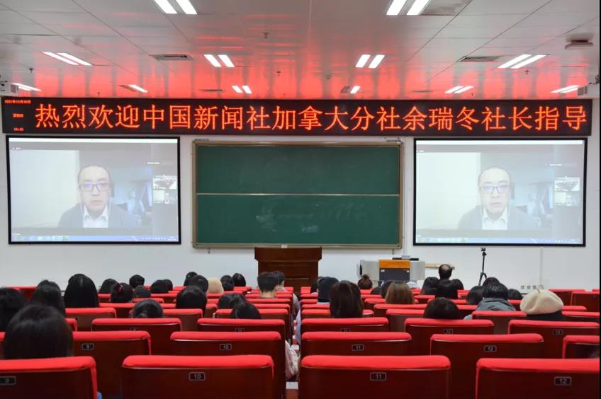 12月30日上午,我院邀请中国新闻社加拿大分社余瑞冬社长以视频通话的形式作《从孟晚舟事件报道谈谈国际传播》的讲座。本次讲座在学院西报告厅举行,由王辉副院长主持,我院100多位硕士研究生到场聆听。