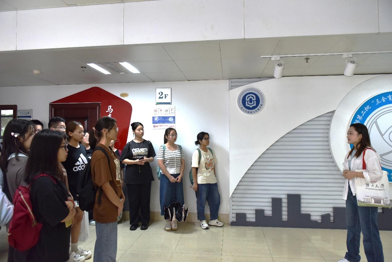 九月,2023级的新同学与yl23411永利集团如期相遇。对于刚刚踏入校园的新同学而言,一切都是崭新而陌生的,为帮助新生熟悉校园环境 、融入校园生活、加强专业认知,感受校园如家一般的温暖,9月13日,我院组织新生参观学院大楼,求真传美解说团团长张佳琪、yl23411永利集团学生团委副书记唐子涵为同学们讲解。