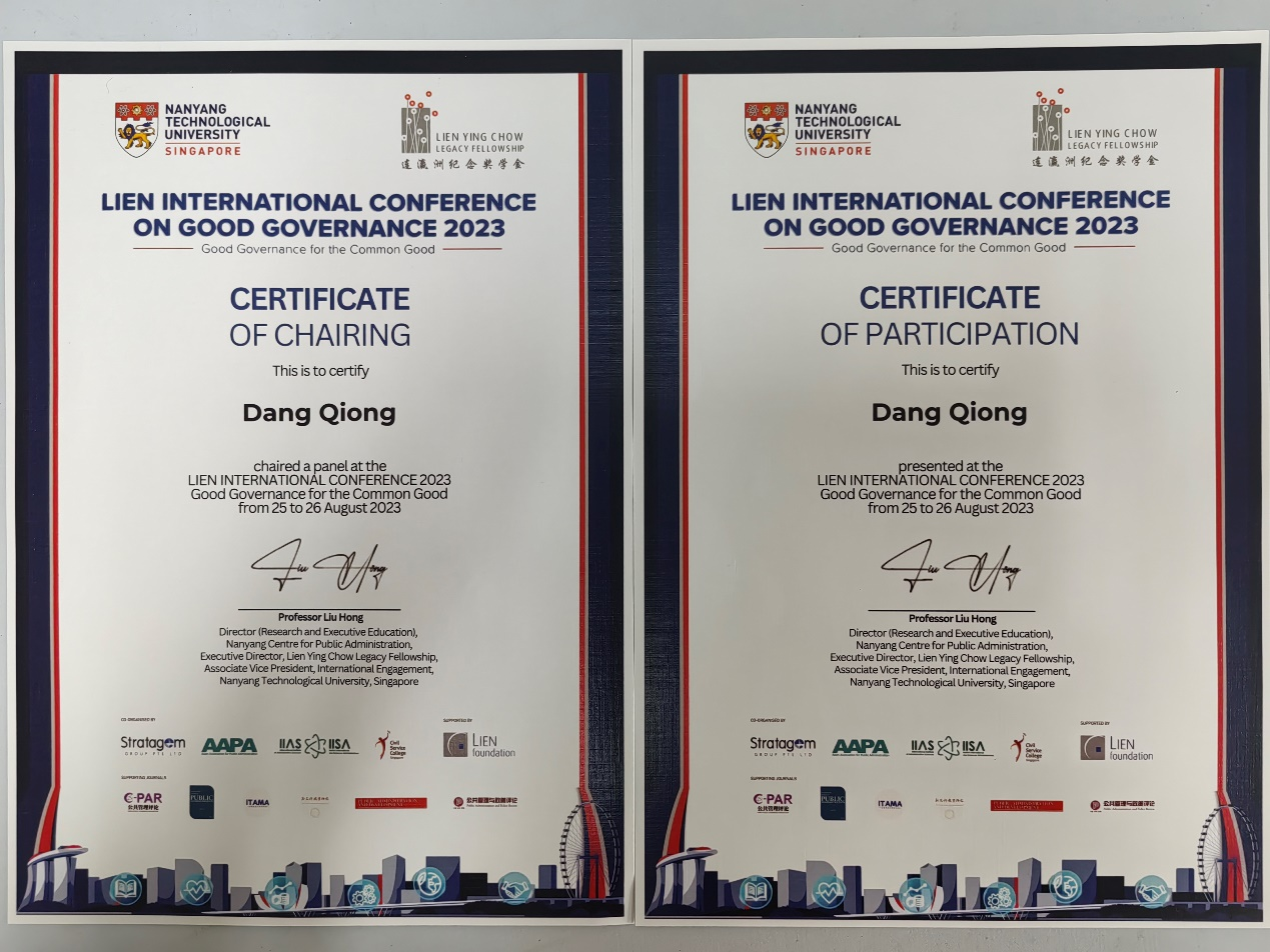 8月25日,2023年新加坡连氏善治国际学术会议在新加坡南洋理工大学举行。我院助理教授党琼参加本次国际会议并作学术报告,同时受邀担任分论坛四的主持人。