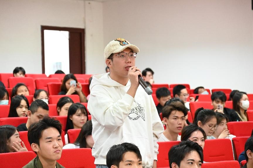 讲座当天是播音员齐越先生逝世30周年纪念日,在正式开始讲座之前,付程老师讲述了自己向齐越老师拜师求学的故事,由衷地表达对齐越老师的缅怀与崇敬。在讲座中,付程教授就播音主持有声语言艺术的创造性、情感构成、情感表达的标准与要求进行讲解,并与同学们进行交流互动。付程教授在讲座上提出“未成语调先有情,播音主持创作中声音不是第一位而感情才是。”