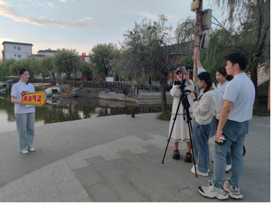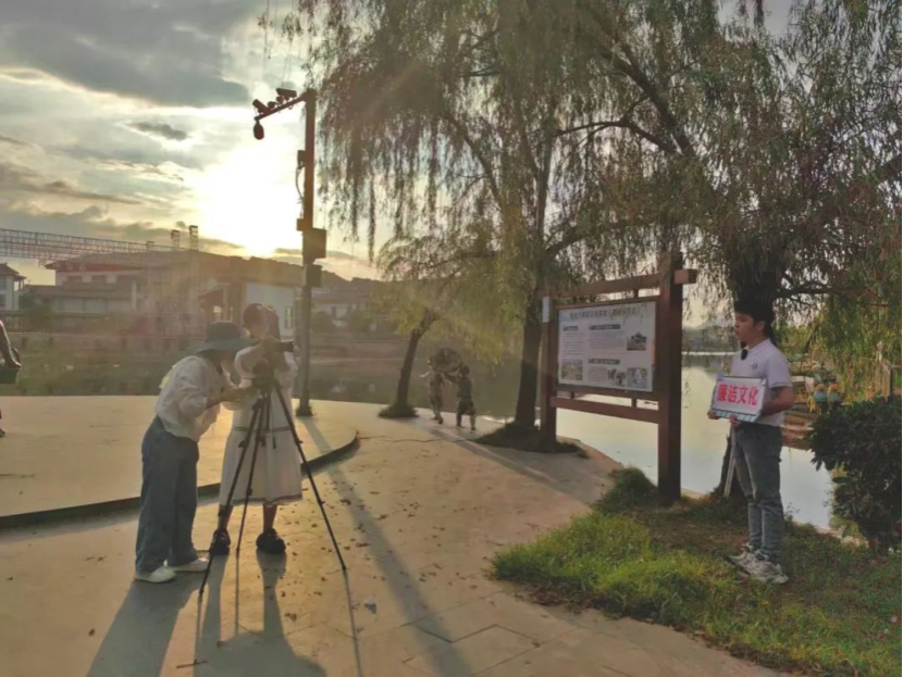 抵达“荷美覃塘”后,团队分别于“醉莲阁”、“陆绩码头”、“莲心广场”“万亩荷田”进行堪景、拍摄。炎炎夏日,炽热的阳光烘烤着大地,但同学们热情不减,坚持投入拍摄工作。俯身躬行,脚踏实地,团队成员们真正践行脚力、眼力、脑力、笔力,以期达到最佳拍摄效果,在润物无声中弘扬清正廉洁的传统美德,助力青年学子涵养克己奉公、清廉自守的精神品质。