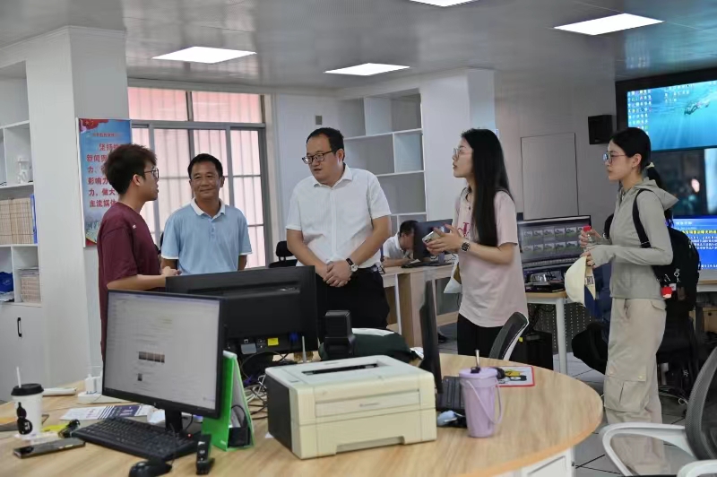 座谈结束后,在融媒体中心主任黄增瑜和副主任梁桂花的带领下,调研团成员参观了融媒体中心指挥调度中心、演播室、采编室等设施和场所。薛强老师对大新县融媒体中心建设工作给予高度评价,认为大新县政府高度重视融媒体中心建设工作,取得了较好的成果。大新县融媒体中心在促进铸牢中华民族共同体意识、对越南国际传播等方面,起到了不可替代的非常重要的积极作用,并鼓励我院学生到县级融媒体中心实习和工作。