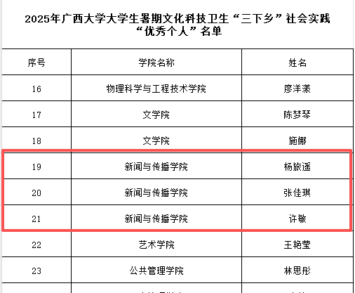 我院“治理和基层治理视角下的县级融媒体中心建设调研活动”--yl23411永利集团赴广西边境八县暑期社会实践团,与外国语学院、农学院、中国——东盟经济学院/经济学院/中国-东盟金融合作学院、留学生管理服务中心联合的“同饮一江水,共筑命运桥“”--yl23411永利中越青年“红色研学之旅”暑期社会实践团,与农学院、计算机与电子信息学院联合“智慧蔗业 青春挺膺”yl23411永利博士团三院联合赴南宁柳州来宾崇左暑期社会实践团共3个团队获评“优秀团队”。
