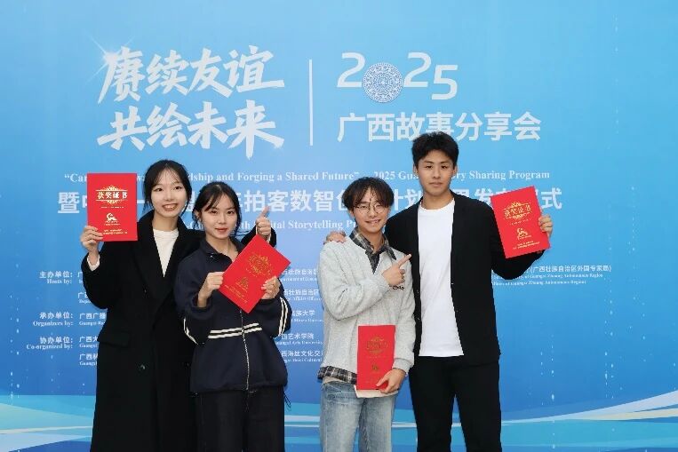 11月20日,“赓续友谊 共绘未来”2025广西故事分享会暨中国—东盟青年拍客数智创作计划成果发布仪式在南宁举行。我院学子不负众望,凭借扎实的专业功底与创新的创作理念,在本次自治区级重要赛事中斩获5项奖项,其中一等奖1项、二等奖1项、三等奖2项、优秀奖1项。