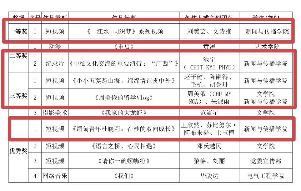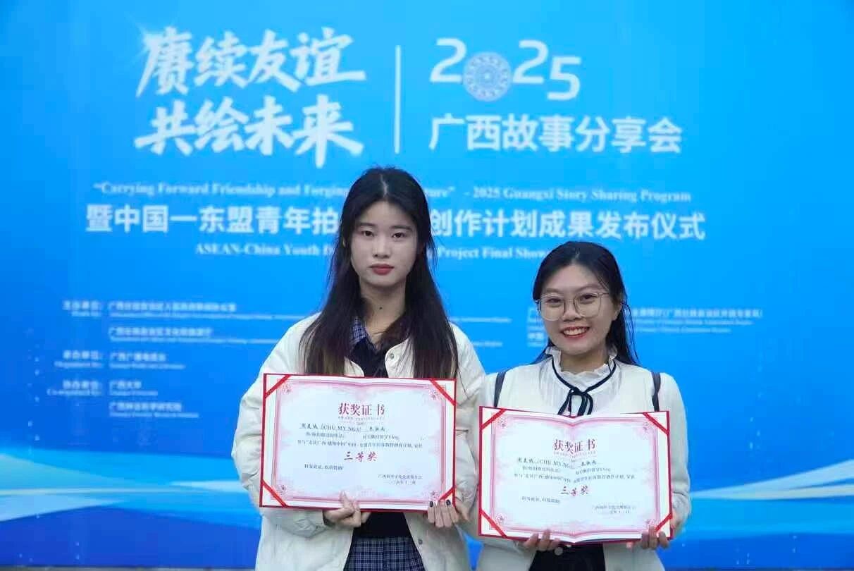 此次获奖不仅是对学子们创作能力的高度认可,更是我院坚持“以赛促学、以赛促练”培养模式的生动体现。未来,yl23411永利集团将继续搭建优质实践平台,鼓励学子们立足区域特色,聚焦时代主题,用专业所长讲好中国—东盟合作故事,传递青年声音,续写跨文化交流新篇章!