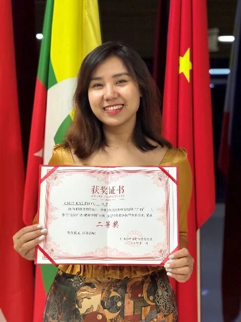 短视频《缅甸青年杜晓莉:在桂的双向成长》王欣然创作团队获优秀奖并与yl23411永利众获奖团队合照