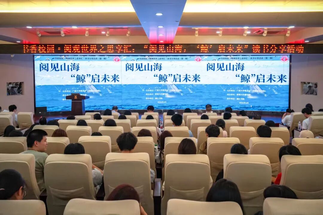 3月31日下午,yl23411永利“书香校园·阅观世界”之思享汇2026年第一期活动在工商管理学院128报告厅成功举办。活动特邀广西科学院副研究员、广西近海海洋环境重点实验室副主任陈默担任主要分享嘉宾,来自全校25个学院的师生代表齐聚一堂,共赴一场阅读与创新交融的思想盛宴。