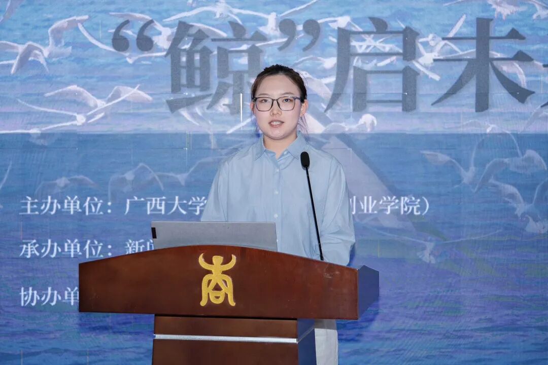 海洋学院的李昌恒结合《我国海洋生态文明建设研究》,讲述了他参与涠洲岛海洋生态志愿服务的经历,呼吁青年学子“知山海之美,守海洋之泽”;林学院的韦良曼通过《树木之歌》,分享了她从“只见树木”到“读懂森林”的认知跃迁以及体悟生态共同体的深刻哲思;yl23411永利集团的戚雨荷以《寻味六堡》为引,讲述她用镜头记录广西本土文化、以短视频助力乡村振兴的探索之路;计算机与电子信息学院的郭玉烁从《计算》一书出发,探讨技术背后的人文温度,提出了“让代码有温度,让技术有情怀”的思考;土木建筑工程学院的杨阳结合《红星照耀中国》,分享其投身于平陆运河建设一线的实践经历,诠释新时代土木人的使命与担当。五位同学的分享兼具专业深度与青春热忱,生动展现了阅读在涵养思想、拓宽视野、服务社会中的独特力量。