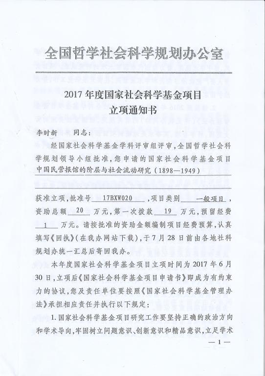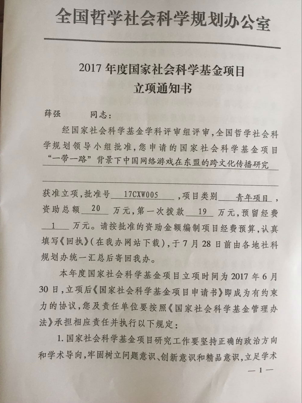我院李时新博士、薛强副教授分别获得2017年国家社科一般项目、国家社科青年项目