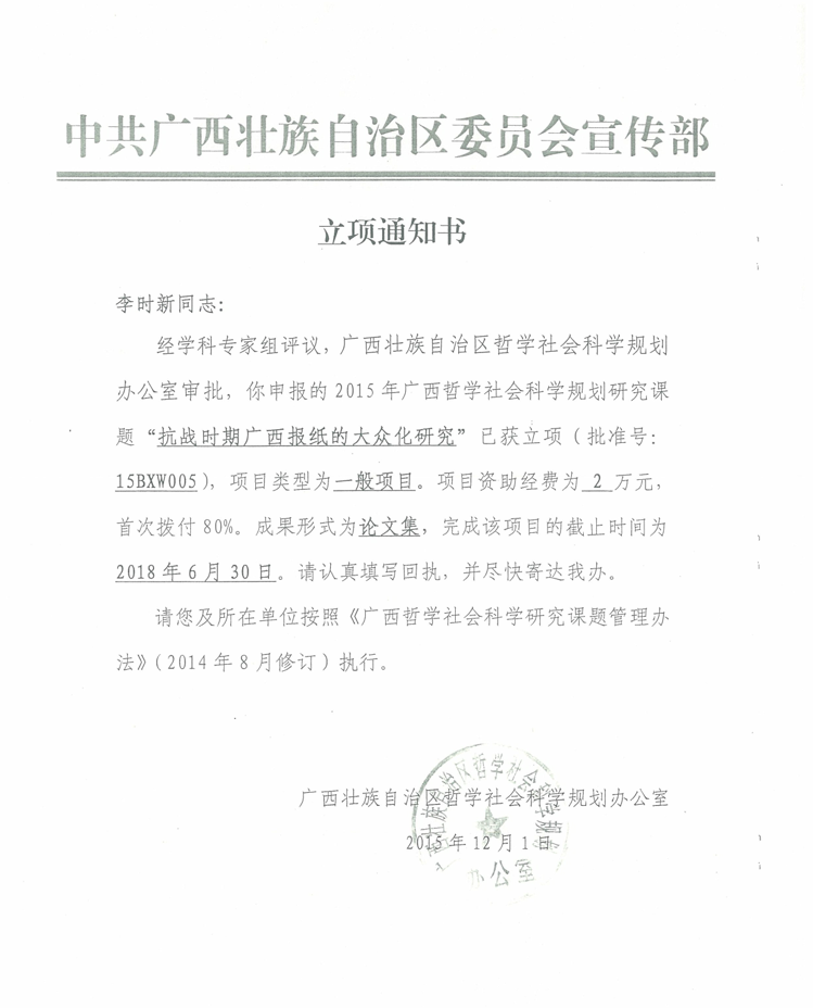 我院江宇副教授2016年申报广西哲社项目获得立项