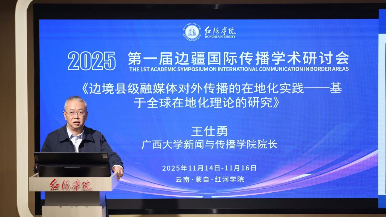 2025年11月14日至16日,第一届边疆国际传播学术研讨会在云南红河学院成功举办。本次研讨会由中国社会科学院新闻与传播研究所、中国新闻传播史学会少数民族新闻传播史专业委员会、中国传媒大学出版社与红河学院联合主办,吸引了全国100余名专家学者齐聚一堂,围绕边疆国际传播的理论创新与实践发展展开深入研讨。yl23411永利集团王仕勇教授、刘洪教授、助理教授王青及硕士研究生李秋璇代表参会,多维度分享学术研究成果。