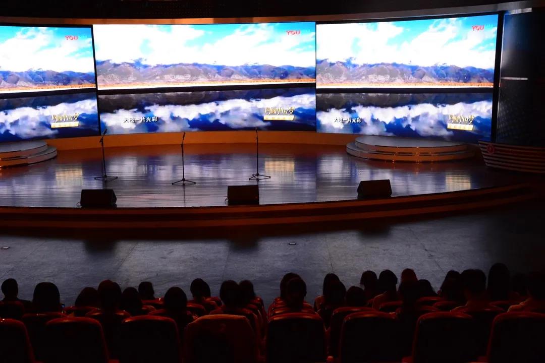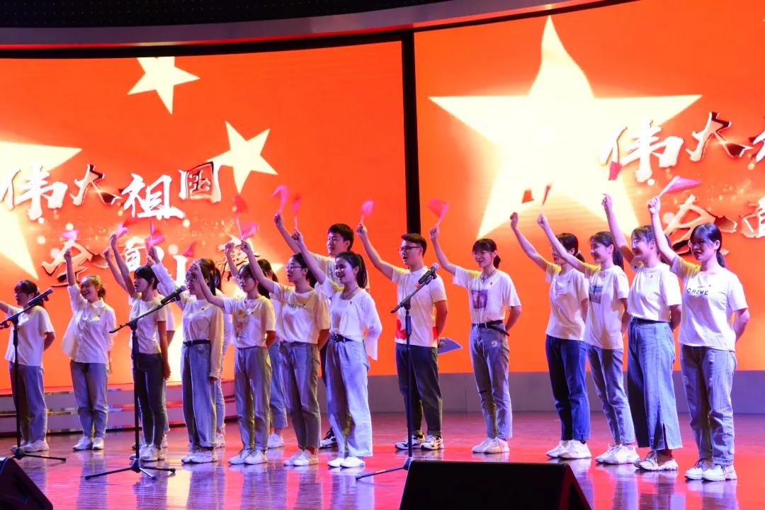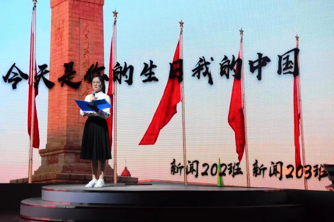 “长江大桥破天险,康藏高原把路开,三门峡上工程大,哪怕它黄河之水天上来。”在讲解员声情并茂的朗诵后,在场师生一起欣赏了歌颂新中国,震撼人心的经典之作——《祖国颂》。接着,新闻172班、182班、192班、202和203班分别演唱了《我的祖国》《我爱你中国》《我和我的祖国》《今天是你的生日我的中国》。同学们挥动着手中的国旗,台上台下齐声应和,活动现场歌声不断,掌声不断。