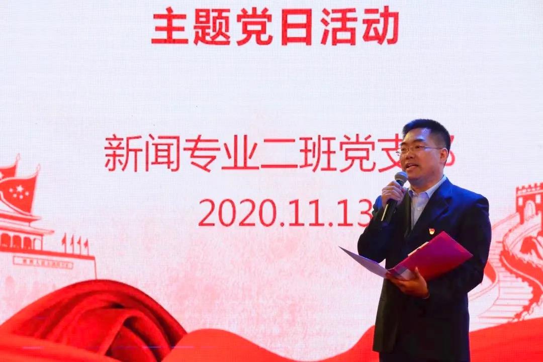 院党委书记唐兴老师用“三个结合”对本次活动进行了点评。他认为,此次主题党日活动是学院所倡导的马克思主义新闻观教育和爱国主义教育的有机结合,是党支部主题党日活动和学生日常思想政治教育的有机结合,是德育与美育的有机结合。同时,他也为同学们精彩的表现点赞。